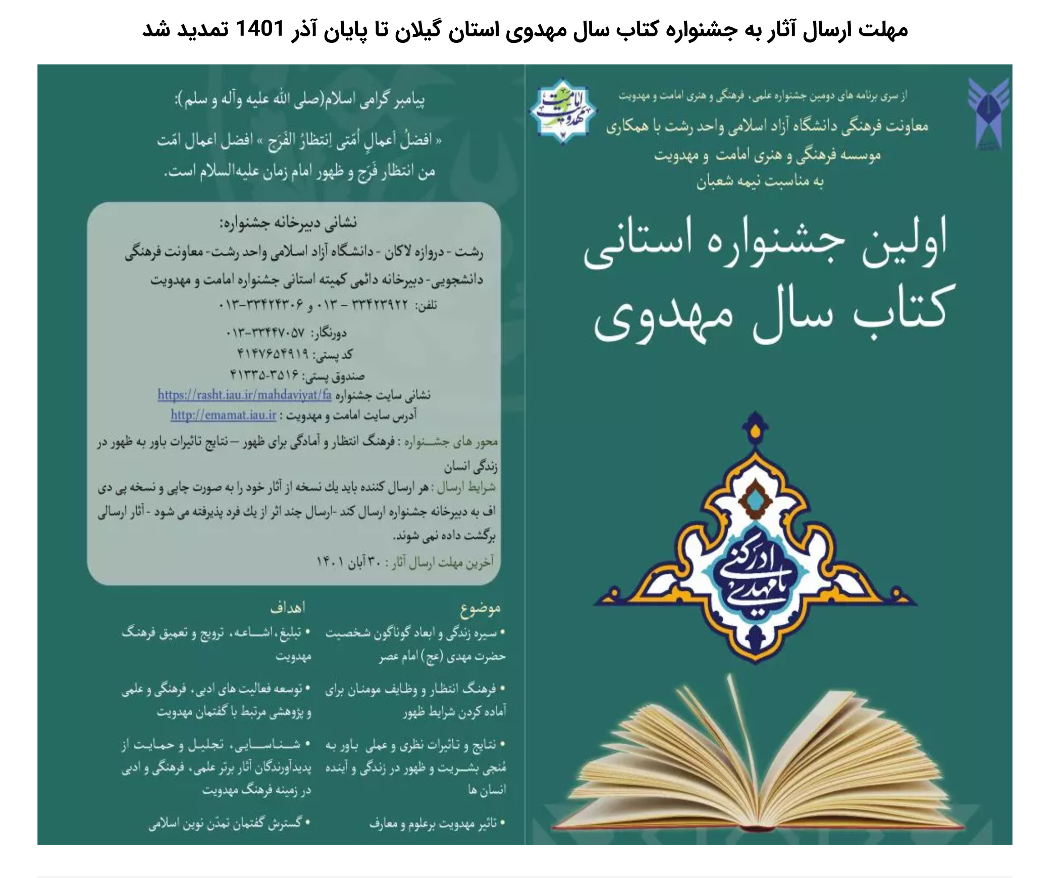 اولین جشنواره استانی کتاب سال مهدوی تمدید شد