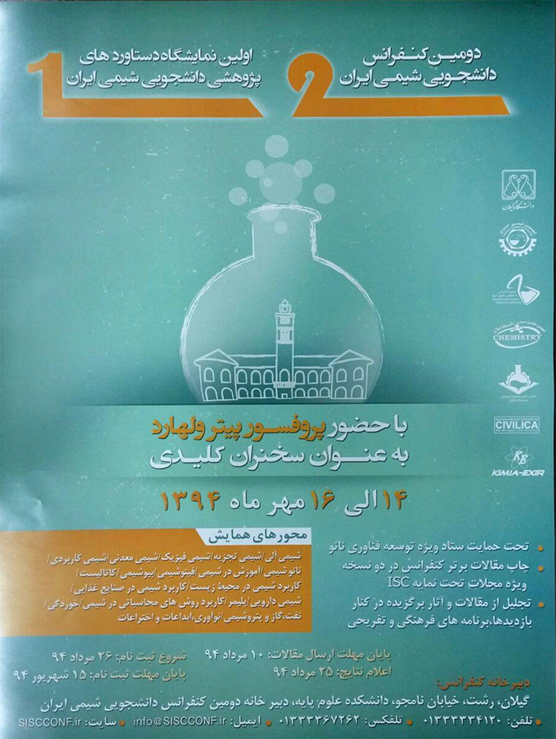 انجمن شیمی ایران در سال 1385 در کنار کنفرانس های بسیار معتبر و فراگیر شیمی، اولین کنفرانس دانشجویی را به میزبانی دانشگاه اصفهان برگزار نموده است. این کنفرانس با استقبال بسیار خوب دانشجویان و اساتید سراسر کشور روبه رو شد. و اما دومین کنفرانس ملی دانشجویی شیمی ایران که بزرگترین رویداد دانشجویی علوم پایه کشور در سال 94 بود به همراه اولین نمایشگاه و مسابقات دستاوردهای پژوهشی دانشجویان شیمی ایران و با هدف نزدیک شدن بیش از پیش صنعت و دانشگاه و ایجاد شور و نشاط در جامعه دانشجویی کشور، با همکاری انجمن شیمی ایران و انجمن علمی دانشجویی شیمی دانشگاه گیلان از تاریخ 14 الی 16 مهر ماه 94 به میزبانی دانشگاه گیلان برگزار شد. از طریق سامانه کنفرانس، 526 مقاله دریافت شد و پس از داوری مقالات توسط اعضای کمیته علمی، 19 مقاله به صورت شفاهی و 367 مقاله به صورت پوستر پذیرفته شد و به پذیرفته شدگان ایمیلی جهت نگارش موارد موردنیاز ارسال گردید. افتتاحیه این کنفرانس در تاریخ 14 مهر ماه94 در تالار حکمت برگزار گردید که با خوشامدگویی و سخنرانی رئیس کنفرانس آغاز شد. سپس دبیر کنفرانس گزارشی از روند برگزاری این کنفرانس را ارایه دادند. در ادامه نیز سخنرانی مهندس افشین رحیمی مدیر عامل شرکت نیوساد به عنوان حامی ویژه کنفرانس، پخش کلیپ افتتاحیه دومین کنفرانس دانشجویی شیمی ایران، سخنرانی پروفسور زلفی گل با عنوان »بررسی وضعیت علمی ایران در جهان«، مصاحبه شبکه استانی گیلان با دبیر کنفرانس و نویسندگان مقالات برتر، مصاحبه با پروفسور ولهارد و مصاحبه با رئیس اولین نمایشگاه دستاوردهای پژوهشی دانشجویان شیمی ایران انجام گرفت. سپس پروفسور ولهارد به ایراد سخن پرداختند و به سؤالات افراد حاضر در سالن پاسخ دادند. ارایه سخنرانی های کلیدی، ارایه پوستر و سخنرانی های شفاهی، برگزاری نشست بررسی مشکلات آموزشی و پژوهشی دانشجویان شیمی، بازدید از اولین نمایشگاه دستاوردهای دانشجویان شیمی، برپایی غرفه های فرهنگی، برگزاری کارگاه کارآفرینی در شیمی، برگزاری کارگاه های آموزشی، برگزاری اولین نشست دبیران انجمن های علمی دانشجویی شیمی سراسر کشور و انتخابات شورای مرکزی اتحادیه، بازدید فرهنگی و همچنین برگزاری کارگاه توانمندسازی و دانش افزایی ویژه اساتید از دیگر برنامه های این کنفرانس بود. اختتامیه این کنفرانس نیز در تاریخ 16 مهر ماه در ساختمان کلاسهای دکتر ابریشم چیان برگزار گردید که با سخنرانی و گزارش نهایی دبیر کنفرانس همراه بود. تجلیل از پروفسور ولهارد توسط مسئولین برگزاری، تقدیر از پروفسور زلفی گل دبیر انجمن شیمی ایران، تقدیر از مهندس رحیمی حامی ویژه کنفرانس، تقدیم کتاب توسط دکتر زلفی گل به پروفسور ولهارد، اجرای نمایش گیلانی، تقدیر از مقالات برتر و بازدید میهمانان و پروفسور ولهارد از موزه میراث روستایی از برنامه های دیگر مراسم اختتامیه بود. در ضمن با دعوت از پروفسور ولهارد در دفتر رئیس دانشگاه گیلان، حکم عضویت افتخاری هیأت علمی گروه شیمی به ایشان اهدا گردید.