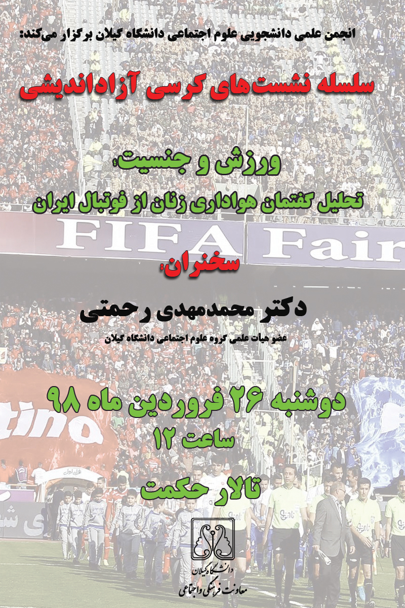 انجمن علمی دانشجویی علوم اجتماعی دانشگاه گیلان کرسی آزاد اندیشی با عنوان" ورزش و جنسیت؛ تحلیل گفتمان هواداری زنان از فوتبال ایران" را در دانشگاه گیلان برگزار می نماید.