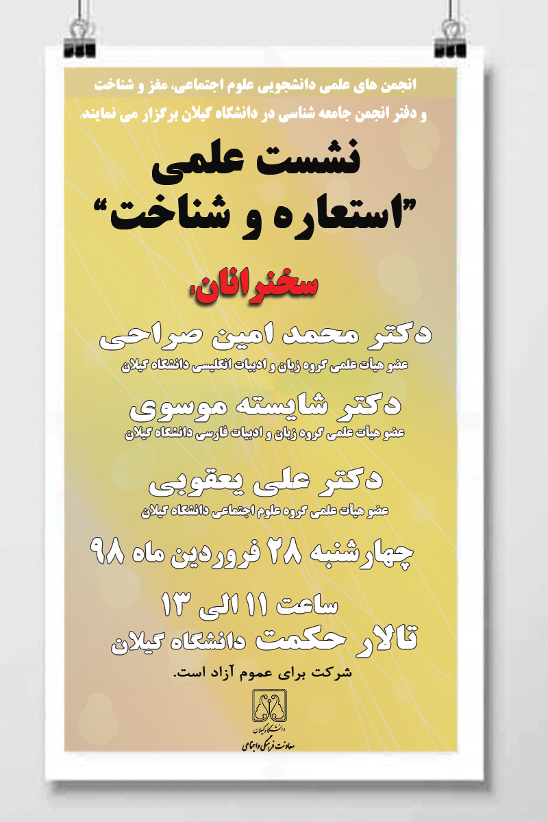 انجمن های علمی دانشجویی علوم اجتماعی، مغز و شناخت  و دفتر انجمن جامعه شناسی نشست علمی "استعاره و شناخت" را در دانشگاه گیلان برگزار می نمایند.