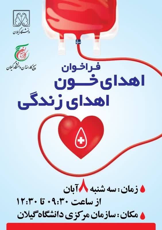 با هماهنگی بسیج اداری دانشگاه پایگاه اهدای خون سیار، روز سه شنبه ۸ آبان ماه ۱۴۰۳ ساعت ۹:۳۰ تا ۱۲:۳۰ در طبقه همکف سازمان مرکزی دانشگاه گیلان برپا گردید.