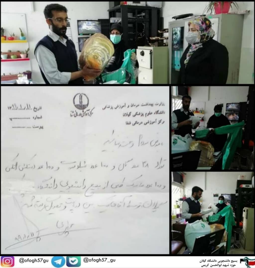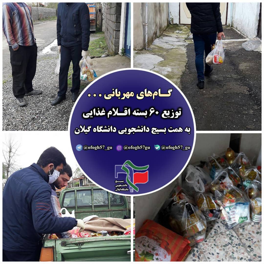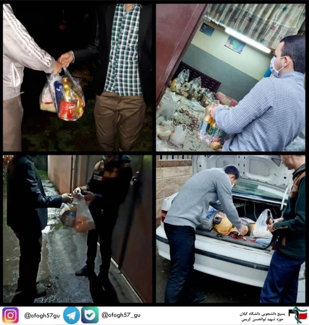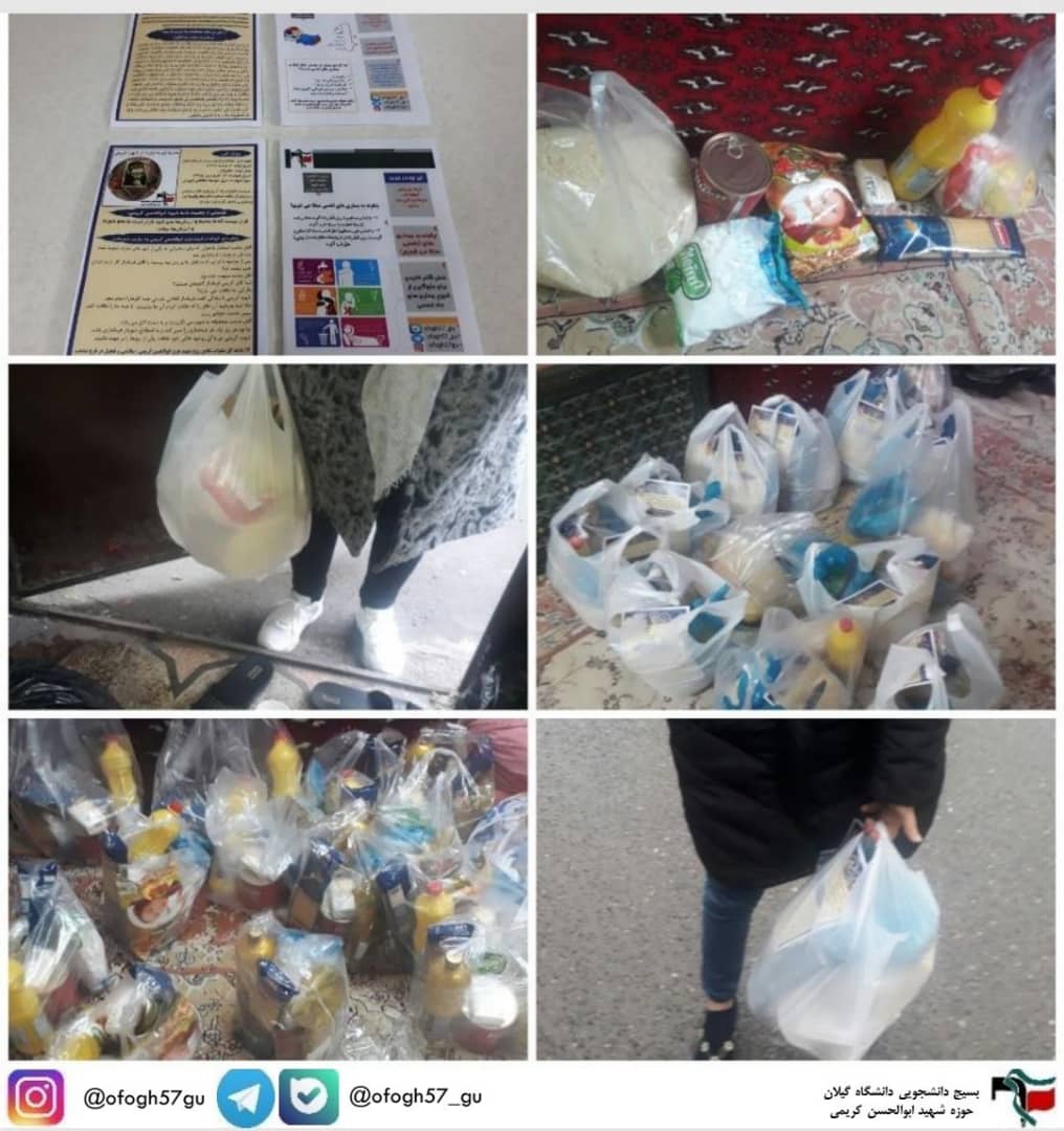 ـ تهیه وتوزیع 12 بسته اقلام غذایی و بهداشتی توسط بسیج دانشجویی دانشگاه گیلان برای خانواده های محروم و کم در آمد در شهرستان لنگرود
