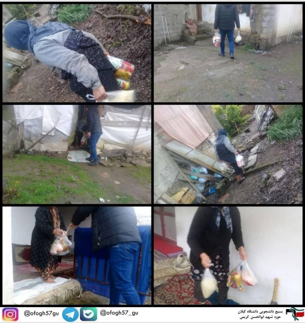 ـ تهیه و توزیع 12 بسته اقلام غذایی و بهداشتی توسط بسیج دانشجویی دانشگاه گیلان به خانواده های محروم در شهرستان صومعه سرا