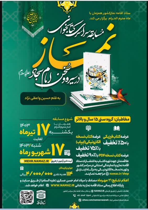 پنجمین مسابقه سراسری کتابخوانی نماز از کتاب ” نماز در سیره و سخن امام سجاد علیه السلام “