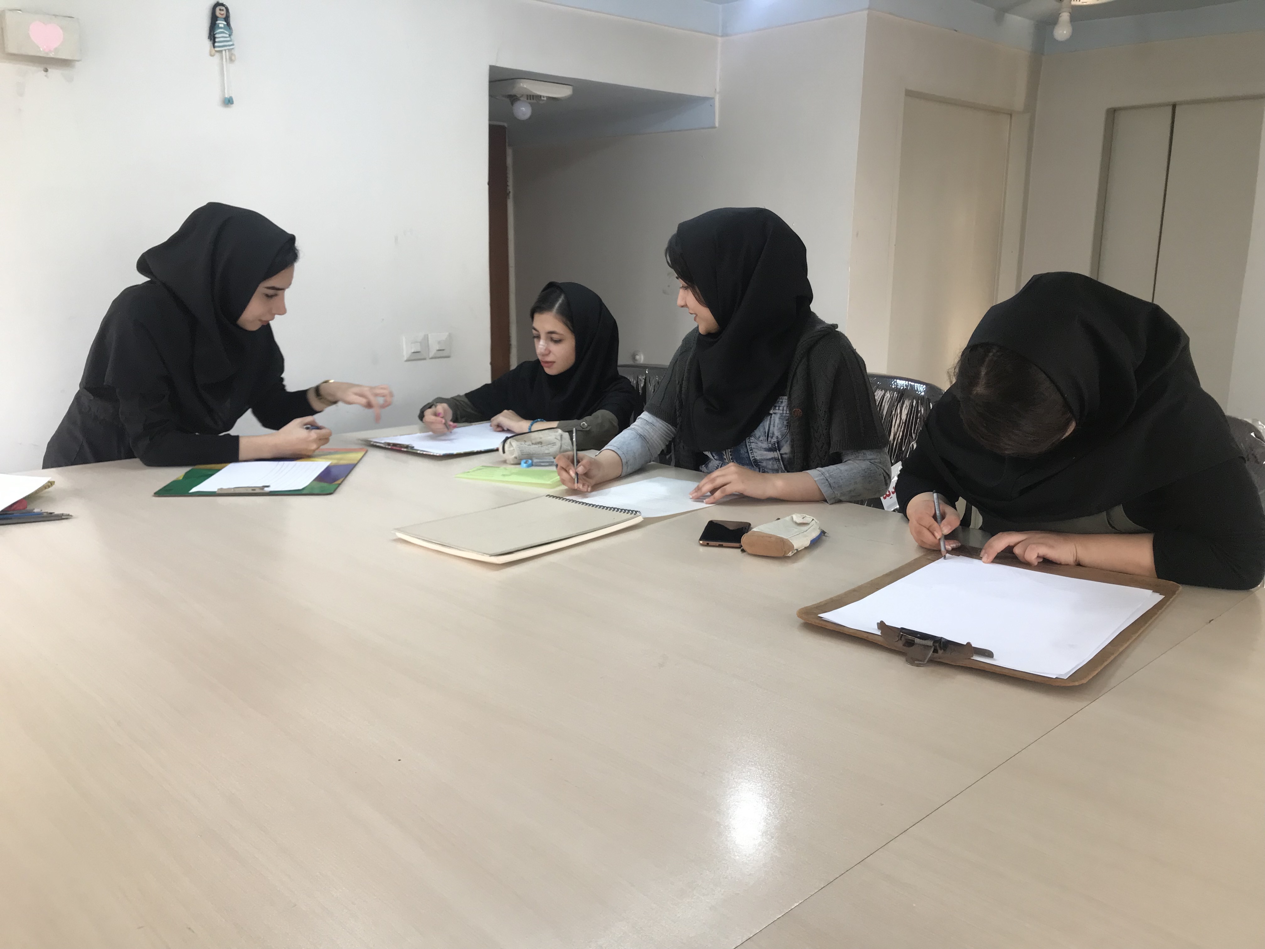 جلسه سوم : از جلسه سوم دوره مقدماتی کاربا زغال آموزش داده شد. درابتدا هنرجویان را بانوع زغال ، شکل و کاربرد آن آشنا کردیم و درمرحله بعد بااستفاده از کتاب طراحی از چهره ترجمه عربعلی شروه ، تعدادی طرح انتخاب شد و هنرجویان در ابتدا طرح را بامداد کشیدند و درمرحله بعد آموزش سایه و استفاده از زغال و چگونگی سایه زدن با زغال آموزش داده شد و هنرجویان کار با زغال را آموختند.
