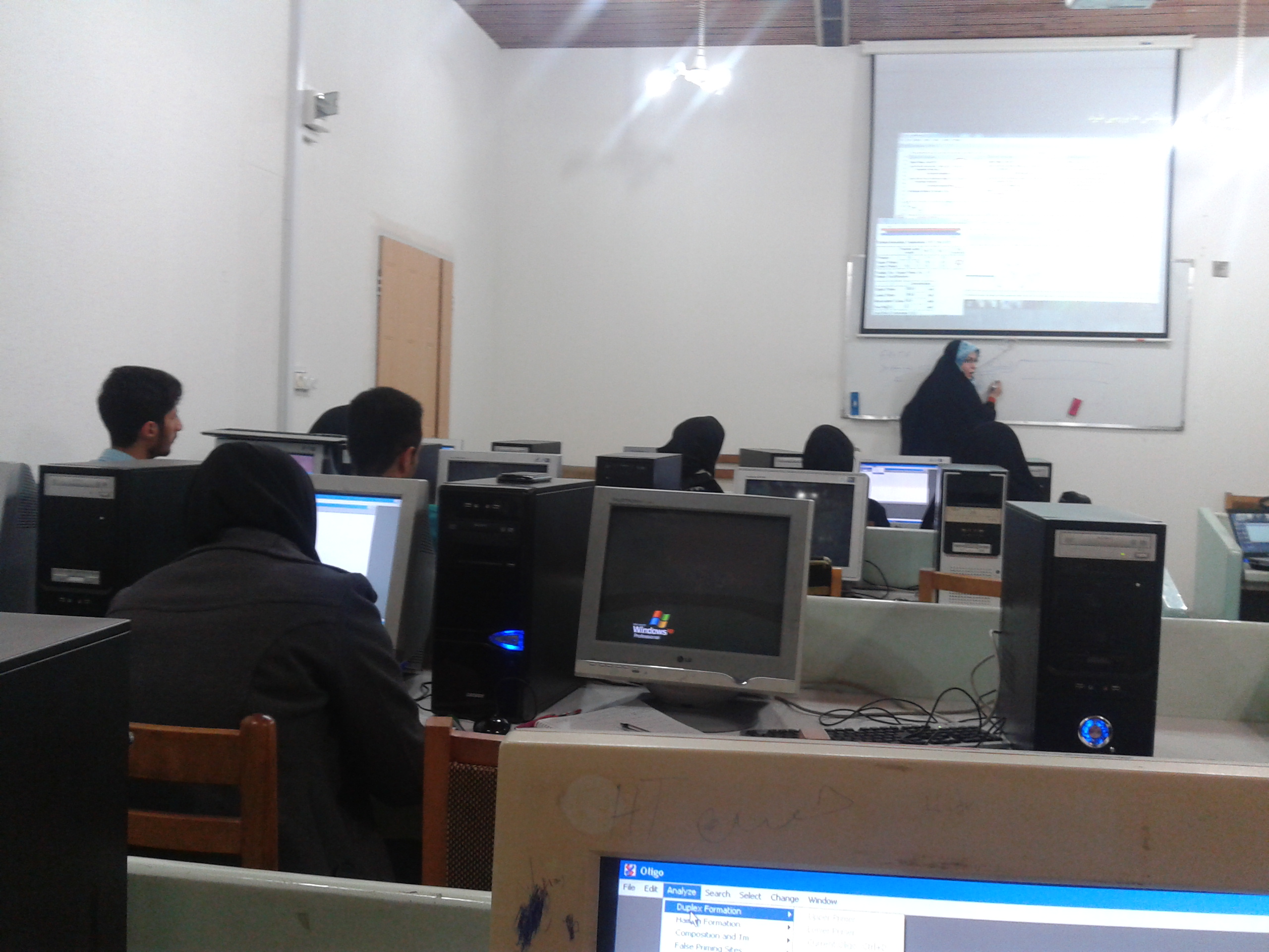 کارگاه آموزشی طراحی پرایمر با نرم افزار Oligo، در تاریخ 13 بهمن 94، ساعت 14 تا 18عصر در سایت رایانه دانشکده کشاورزی برگزار شد. در افتتاحیه این کارگاه، دکتر حبیب الله سمیع زاده، مشاور انجمن علمی سخنرانی کردند و به معرفی مدرس کارگاه پرداختند. سپس مهندس زهرا حاجی احمدی، دانشجوی دکتری بیوتکنولوژی کشاورزی، مدرس کارگاه، تدریس را آغاز کردند. مباحث تدریس شده به ترتیب شامل این موارد بودند: آشنایی مختصر با PCR، نحوه پیدا کردن توالی نوکلئوتیدی در پایگاه داده NCBI، نحوه همردیف سازی توالی در نرم افزار MEGA، آموزش طراحی پرایمر به کمک نرم افزار Oligo، طراحی چند پرایمر توسط مدرس و شرکت کنندگان. کارگاه در دو بخش بین ساعات 14 تا 15 و چهل و پنج دقیقه و بخش دوم بین ساعت 16 تا 18 برگزار شد و پذیرایی بین دو بخش صورت گرفت. در انتها از شرکت کنندگان درباره نحوه برگزاری کارگاه بر اساس فرم های از پیش تهیه شده نظر سنجی صورت گرفت. همچنین به همه شرکت کنندگان یک عدد CD نصب نرم افزار Oligo داده شد.