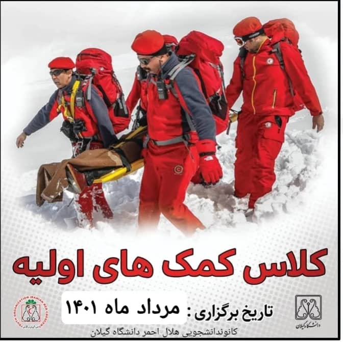 کانون دانشجویی هلال احمر دانشگاه گیلان کلاس امداد و کمک های اولیه را با هدف آموزش احیای قلبی-ریوی ، زخم ها، خونریزی ها، پانسمان ها، سوختگی ها، شکستگی ها ،خفگی، آتل بندی ،بانداژو حمل ها  از 3 تا 15 مرداد 1401 در دانشکده علوم پایه ویژه دانشجویان بومی استان برگزار نمود.