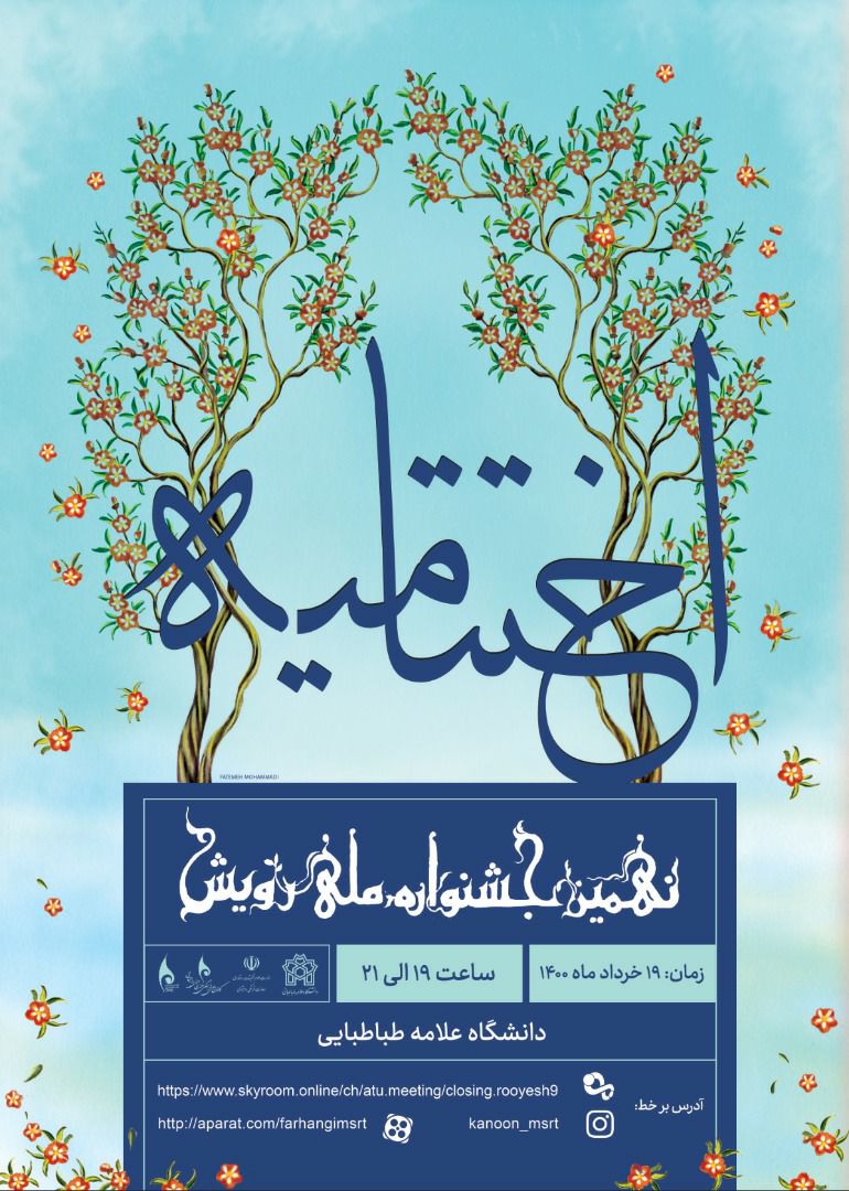 آئین اختتامیۀ نهمین جشنواره ملی رویش به میزبانی دانشگاه علامه طباطبائی به صورت حضوری و مجازی 19 خرداد ماه 1400برگزار شد.