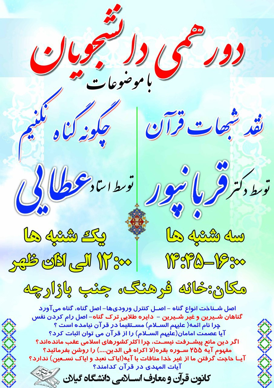 برنامه های کانون قرآن در نیمسال دوم تحصیلی۹۶_٩٧
