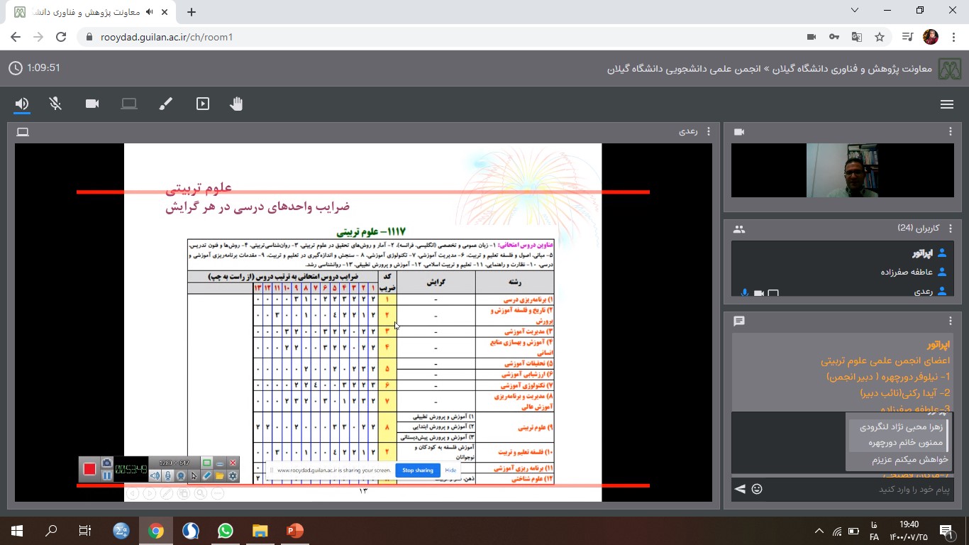 انجمن علمی دانشجویی علوم تربیتی دانشگاه گیلان مراسم معارفه نو ورودی ها 1400 را با محوریت آشنایی دانشجویان ورودی جدید علوم تربیتی(مدیریت و برنامه ریزی آموزشی) در تاریخ 25 مهر ماه برگزار نمود . در این مراسم چیستی و افق های پیش رو آشنایی دانشجویان با استادان علوم تربیتی و معرفی رشته مربوطه و آشنایی با علوم تربیتی، مزایا و فواید آن و فرصت های شغلی مربوط به آن توسط دکتر نقی رعدی افسوران عضو هیأت علمی گروه علوم تربیتی و استاد مشاور انجمن علمی؛ تبیین و تشریح گردید.