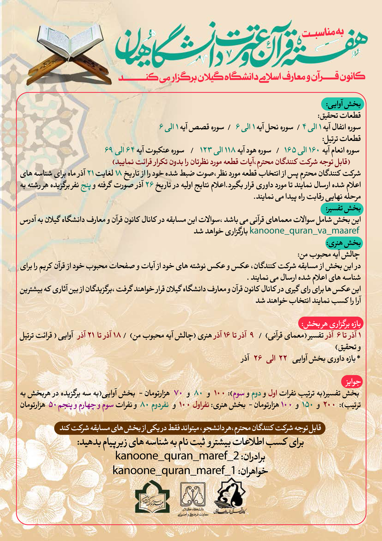نتایج مسابقه قرآن کریم به مناسبت هفته قرآن و عترت دانشگاهیان