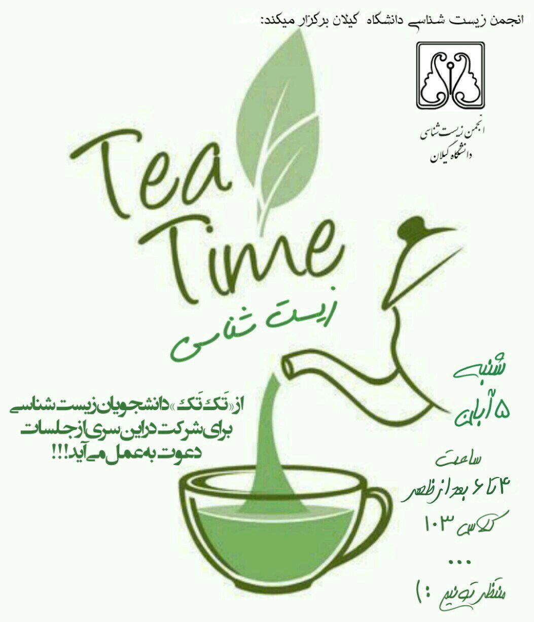 انجمن علمی دانشجویی زیست شناسی نشست های دوره ای با عنوان "Tea Time" و با هدف آشنایی با فعالیت های انجمن، اهداف آینده و جلب مشارکت دانشجویان برگزار نمود. این برنامه با حضور 90 نفر از دانشجویان در 3 جلسه 19،5 ، 26 آبان ماه 97 در دانشکده علوم پایه برگزار شد. آشنایی کامل دانشجویان با انجمن زیست شناسی دانشگاه گیلان، آشنایی با نحوه ی عضوگیری، فعالیت ها، نحوه ی همکاری و مسئولین انجمن، آشنایی با نشریه تکامل (نشریه ی اختصاصی انجمن زیست شناسی دانشگاه گیلان)، چگونگی همکاری با آن ،آشنایی کامل دانشجویان با جشنواره ی حرکت، آشنایی با فعالیت ها، عنواین، نحوه ی همکاری در پروژه ها ،مطلع شدن دانشجویان از مشکلات پیش روی چاپ نشریه، شرح همکاری انجمن های دیگر دانشگاه با انجمن زیست شناسی حول محور برنامه های مشترک و ... از دستاوردهای این دوره بود.