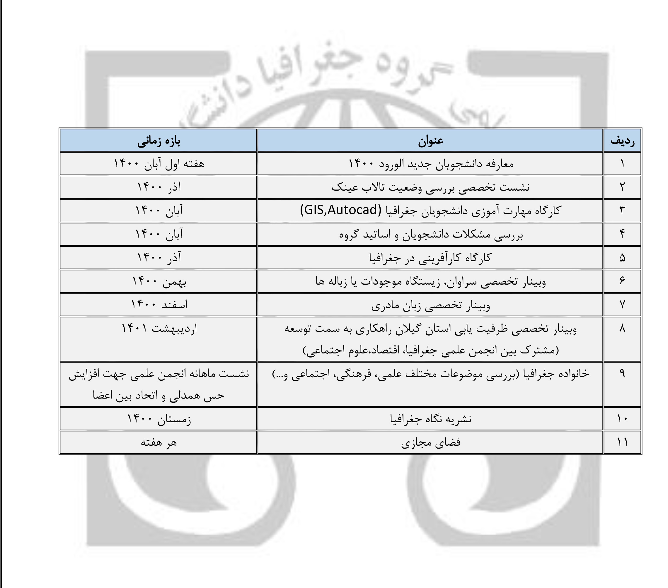 نمایی از برنامه های انجمن علمی دانشجویی جغرافیا در سال 1400