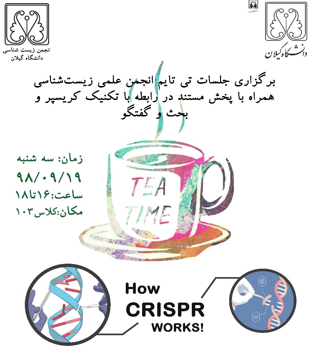 انجمن علمی دانشجویی زیست شناسی جلسه TeaTime (گفتگو در زمینه فعالیتهای علمی و پخش مستند کریسپر برای دانشجویان زیستشناسی) را در تاریخ 19 آذر ماه 98 برگزار نمود.