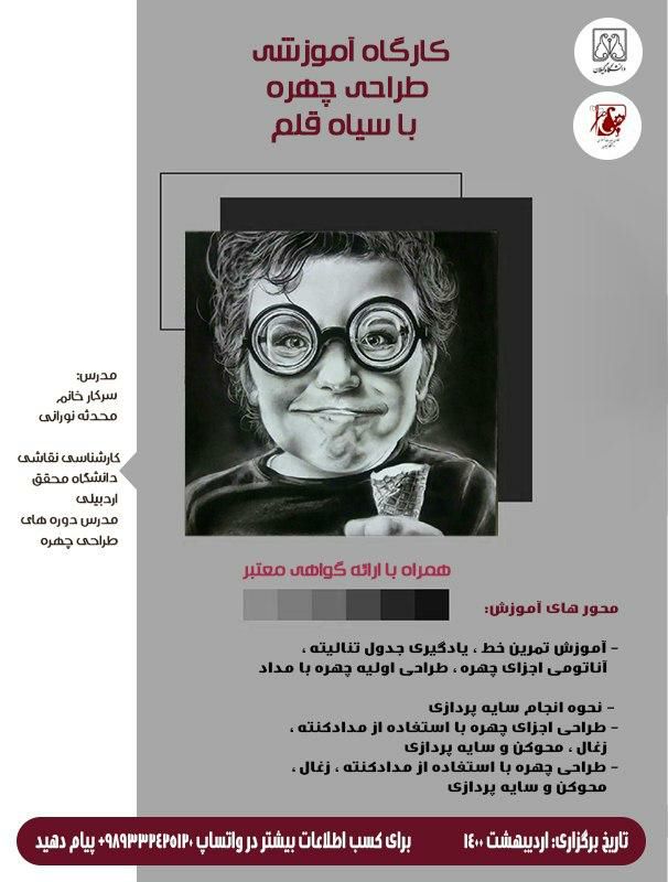 کارگاه آموزشی مجازی طراحی چهره (مقدماتی کار با سیاه قلم) در 8 جلسه 2 ساعته با تدریس محدثه نورانی توسط کانون مهارت آموزی دانشگاه گیلان برگزار گردید.
