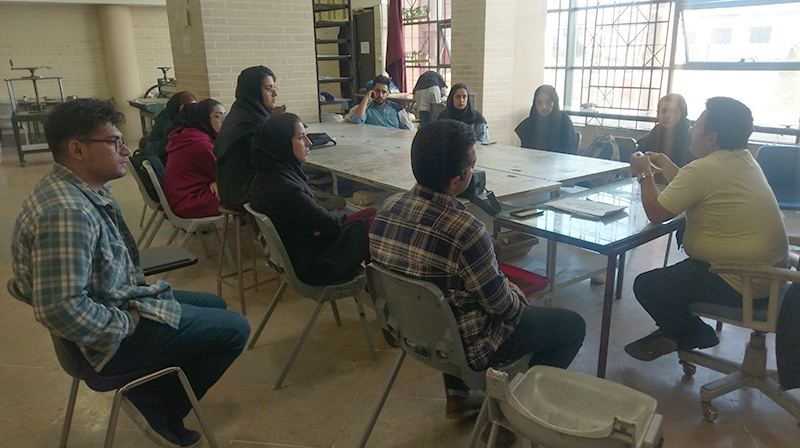 در این این کارگاه 16 نفر از دانشجویان دانشگاه گیلان شرکت داشتند که با آموزش اولیه تئوری و شناخت انواع کلیشه ژلاتینی آغاز شد و پس از آن رویکرد برمبنای کار عملی(آماده سازی کلیشه و اعمال طرح بر روی آن) ادامه یافت سپس نحوه ظهور طرح آموزش داده شد و دانشجویان در ساخت این نوع کلیشه تجربه کسب کردن و در نهایت جلسه پرسش وپاسخ برگزارشد.