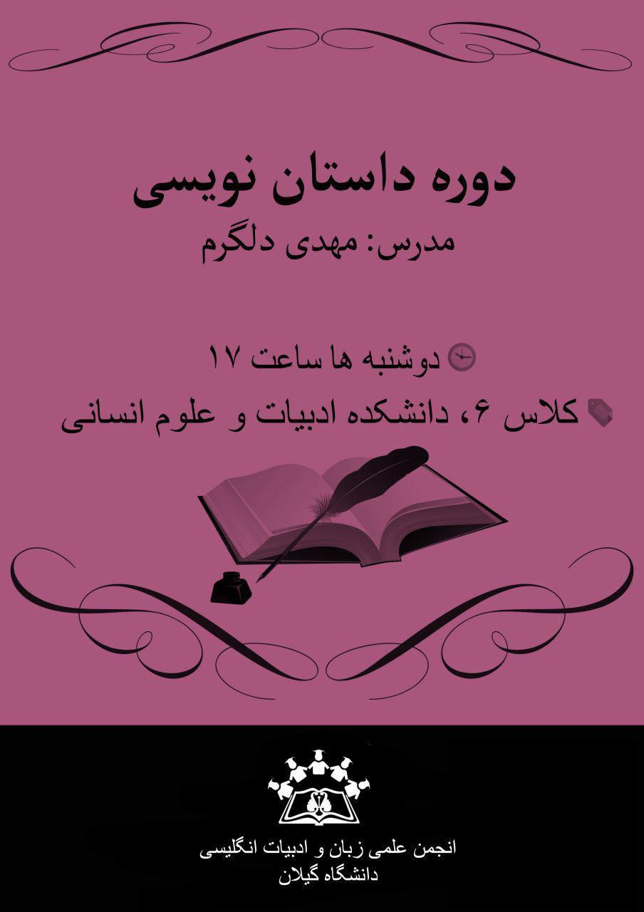 انجمن علمی زبان و ادبیات انگلیسی دانشگاه گیلان دوره داستان نویسی و داستان خوانی را با تدریس مهدی دلگرم در روزهای دوشنبه ها ساعت ١٧ ،کلاس ٦ دانشکده ادبیات علوم انسانی برگزار می نماید. در این دوره یک داستان توسط مدرس انتخاب شده و سپس در جلسه بعدی ضمن بیان نکاتی راجع به داستان نویسی، راجع به خود داستان نیز بحث خواهد شد.