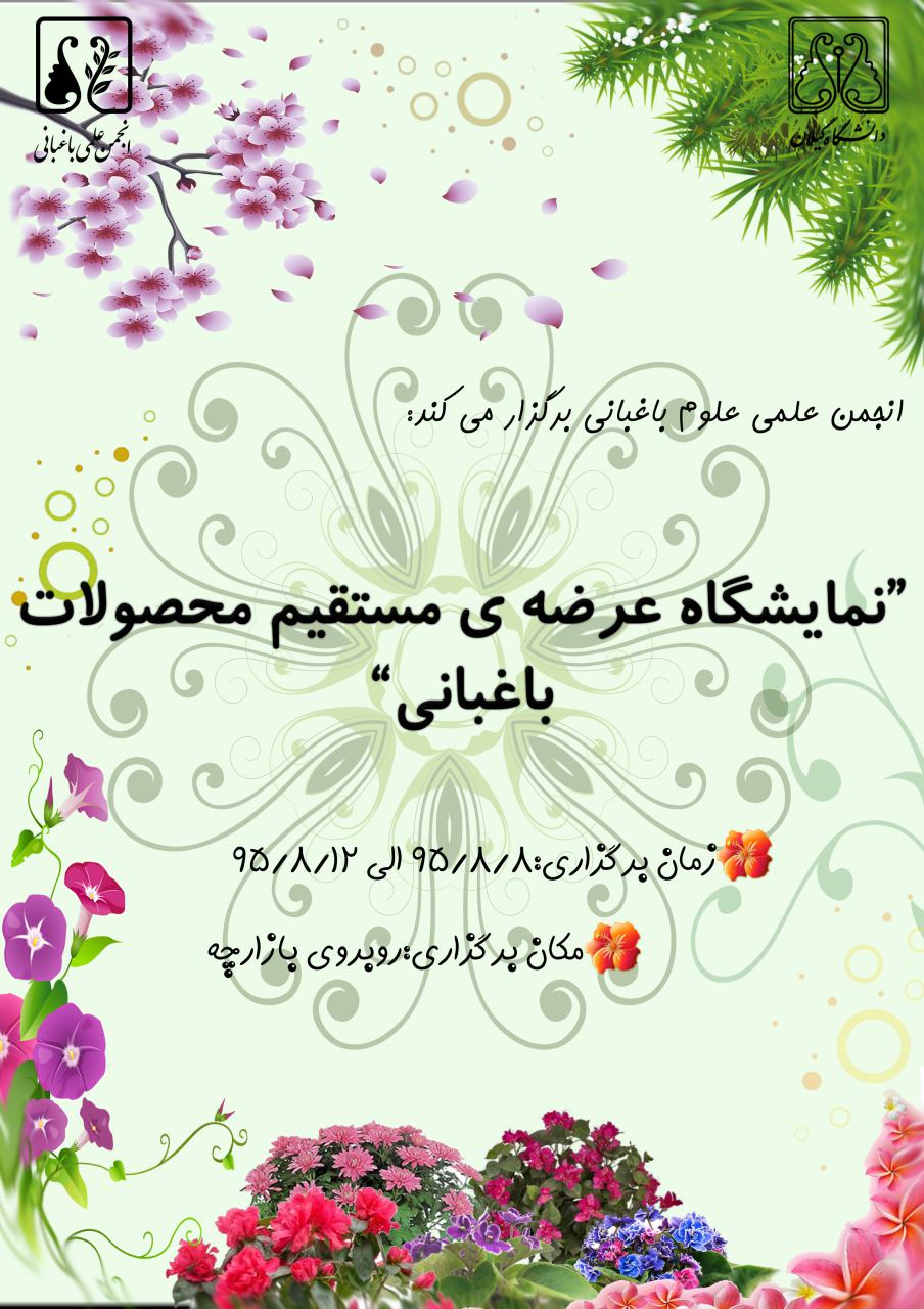 این نمایشگاه با هدف ایجاد بازار فروش برای محصولات تولیدی دانشجویان باغبانی دانشگاه گیلان و آشنایی دیگر افراد با محصولات باغبانی بود. در این راستا افراد زیادی(حدود 100 نفر) به صورت مستقیم و غیر مستقیم در تولید،آماده سازی نمایشگاه،فروش محصولات و همچنین مشاوره در راستای محافظت از این محصولات در برگزاری این نمایشگاه فعالیت نمودند.از جمله ویژگی های این نمایشگاه کارآفرینی برای جمع کثیری از دانشجویان باغبانی بود . همچنین دانشجویان گیاهپزشکی در راستای مشاوره در حفظ و مراقبت از این محصولات همکاری داشتند. این نمایشگاه در راستای همکاری با ستاد برگزاری کنگره ی 8000 شهید استان گیلان ( اریبهشت ماه 95) تحقیقی در مورد گل های نماد شهدا ارائه نمود.