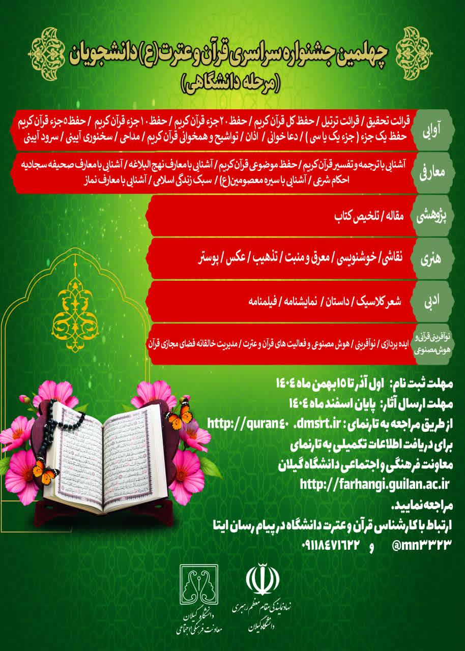 فراخوان چهلمین دوره جشنواره سراسری قرآن و عترت(ع) مرحله دانشگاهی