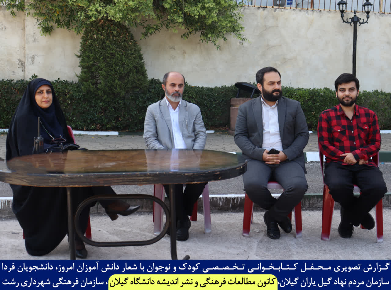 کانون مطالعات فرهنگی و نشر اندیشه دانشگاه گیلان محفل تخصصی کتابخوانی کودک و نوجوان را 11 شهریور ماه 1404 در پارک کتاب محله ی رودباری شهر رشت برگزار نمود. این رویداد به منظور ترویج فرهنگ مطالعه و ایجاد فضایی مناسب برای آشنایی کودکان و نوجوانان با دنیای کتاب و ادبیات طراحی شده بود.