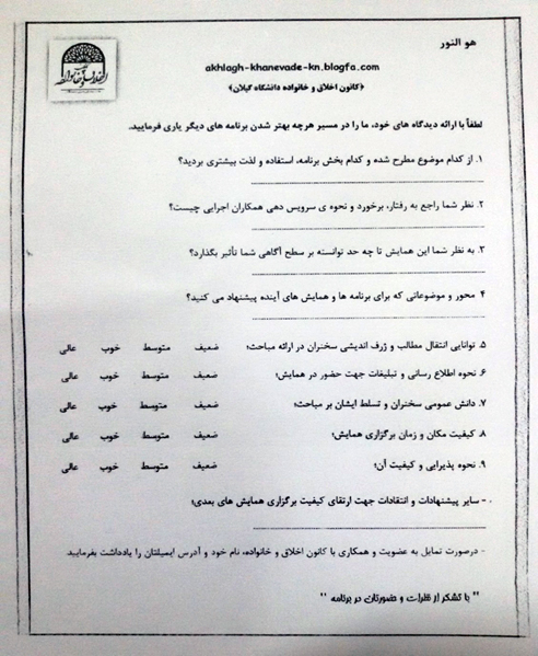 ج) پذیرایی و توزیع فرم نظر سنجی