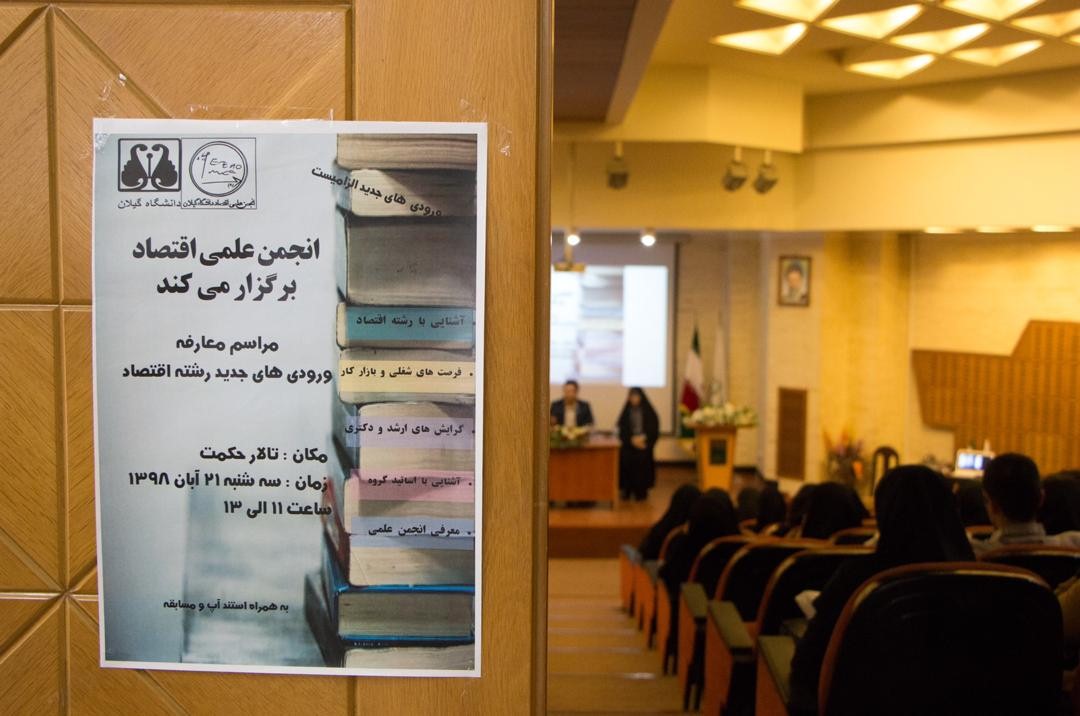 انجمن علمی دانشجویی اقتصاد برای معارفه و دورهمی بین دانشجویان و اساتید مراسمی را در تاریخ 21 آبان ماه 98 در تالار حکمت برگزار نمود. در این مراسم دبیر انجمن علمی اقتصاد درباره فعالیت های نحوه ی عضویت در انجمن توضیحاتی ارائه داد،سپس اساتید گروه در مورد رشته اقتصاد، بازار کار، گرایش های ارشد و دکتری و لازمه های دوران دانشجویی برای دانشجویان مطالبی را بیان کردند.