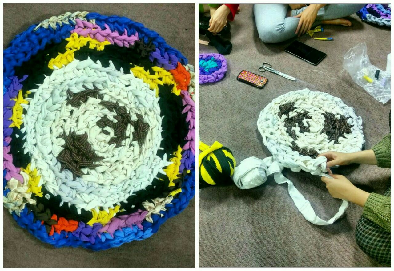 در این طرح چند محوری که در خوابگاه اجرا شد، دانشجویان علاقه مند در جلسات هفتگی، با روشی برای بافت فرش از پارچه های دورریز آشنا شدند و همچنان در بافت فرشی همکاری می کنند که در نهایت در سالن مطالعه ی بلوک یک خوابگاه بنت الهدی استفاده خواهد شد.