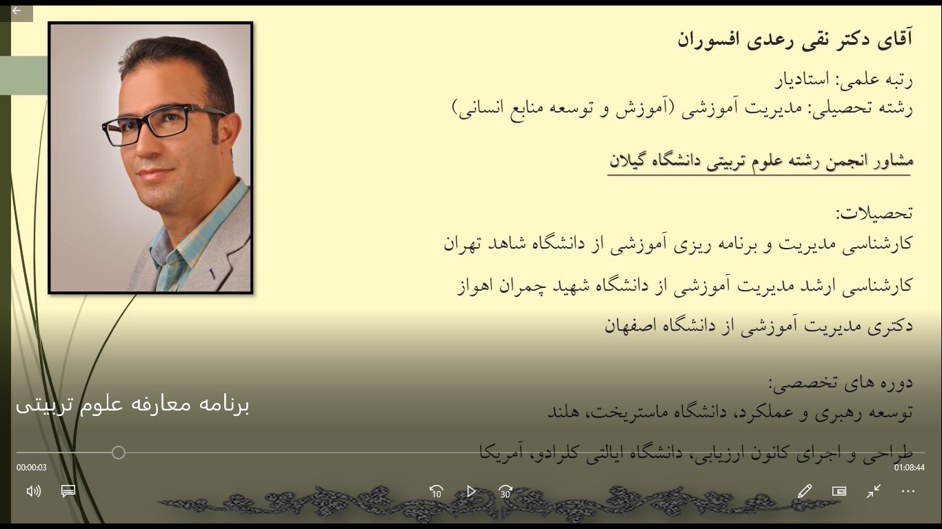 انجمن علمی دانشجویی علوم تربیتی دانشگاه گیلان مراسم معارفه نو ورودی ها 1400 را با محوریت آشنایی دانشجویان ورودی جدید علوم تربیتی(مدیریت و برنامه ریزی آموزشی) در تاریخ 25 مهر ماه برگزار نمود . در این مراسم چیستی و افق های پیش رو آشنایی دانشجویان با استادان علوم تربیتی و معرفی رشته مربوطه و آشنایی با علوم تربیتی، مزایا و فواید آن و فرصت های شغلی مربوط به آن توسط دکتر نقی رعدی افسوران عضو هیأت علمی گروه علوم تربیتی و استاد مشاور انجمن علمی؛ تبیین و تشریح گردید.