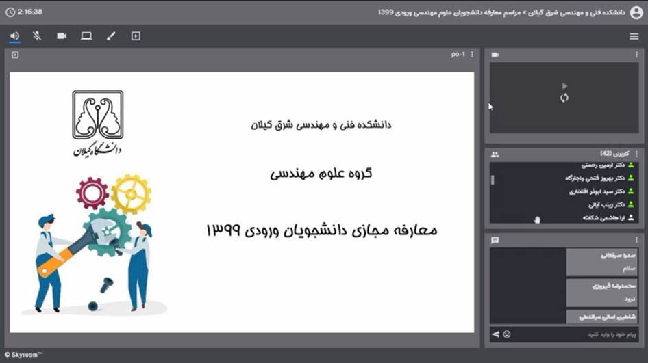انجمن علمی علوم مهندسی به مناسبت آغاز سال تحصیلی جدید و برگزا ری آیین استقبال از دانشجویان ورودی ۹۹ این رشته و همچنین جهت آشنایی با دانشگاه و ضوابط آن امور آموزشی و چارت درسی، مراسم معارفه دانشجویان ورودی جدید را به صورت مجازی در محیط اسکای روم برگزار نمود.