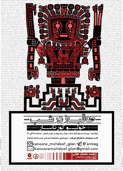 در تاریخ 22 آبان ماه 96 از ساعت 15 الی 18 جلسه ی داستان خوانی در خانه ی فرهنگ دانشگاه گیلان برگزار شد. در این جلسه طاقباز در شب داستانی از نویسنده ی آرژانتینی، خولیو کورتاسار توسط دبیر کانون مطالعات خوانده شد.