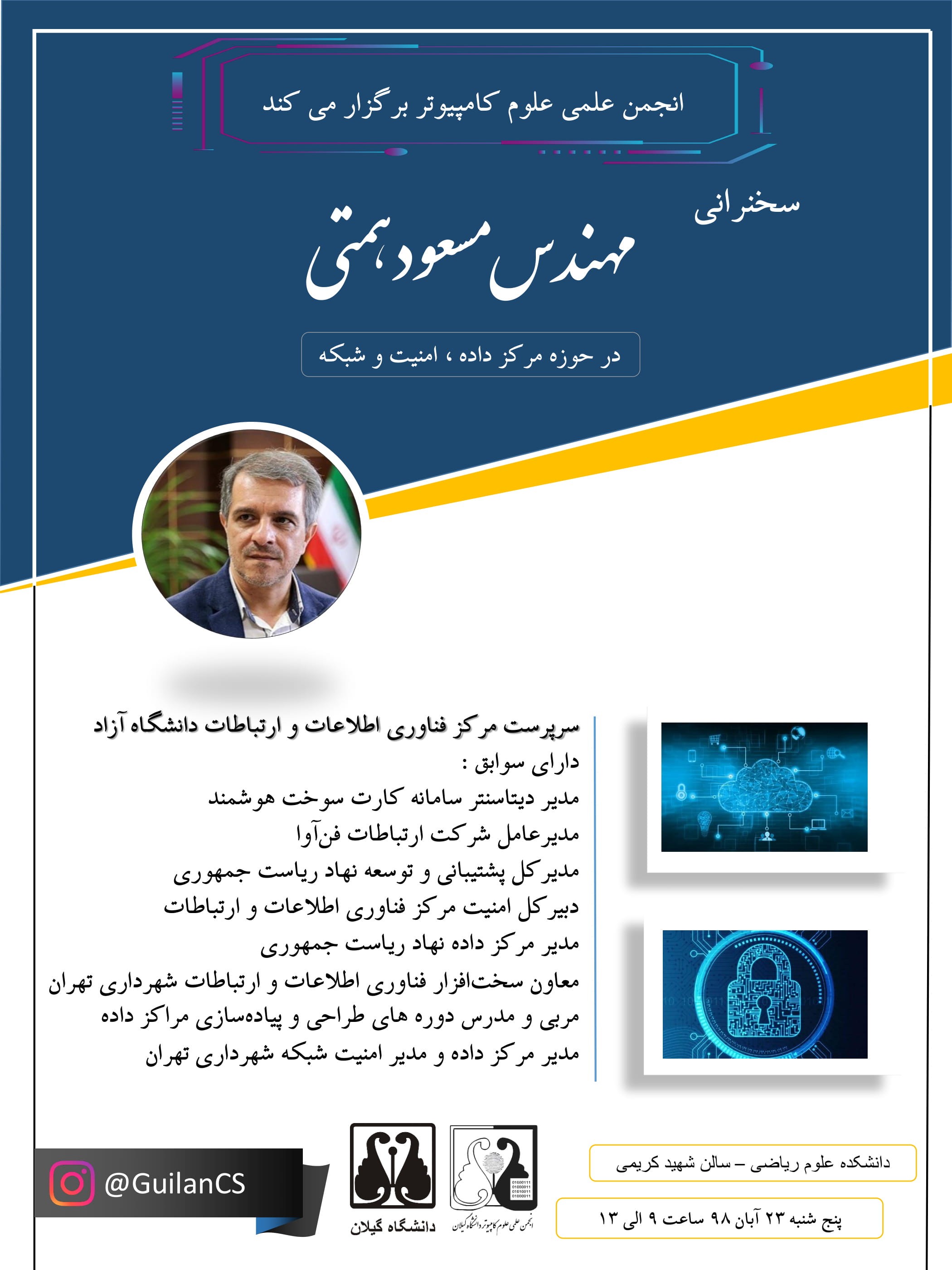 انجمن علمی دانشجویی علوم کامپیوتر نشست با موضوع "دیتا سنتر " را 23 آبان ماه 98 با حضور اساتید و دانشجویان گروه علوم کامپیوتر در تالار شهید کریمی دانشگاه علوم پایه برگزار نمود.