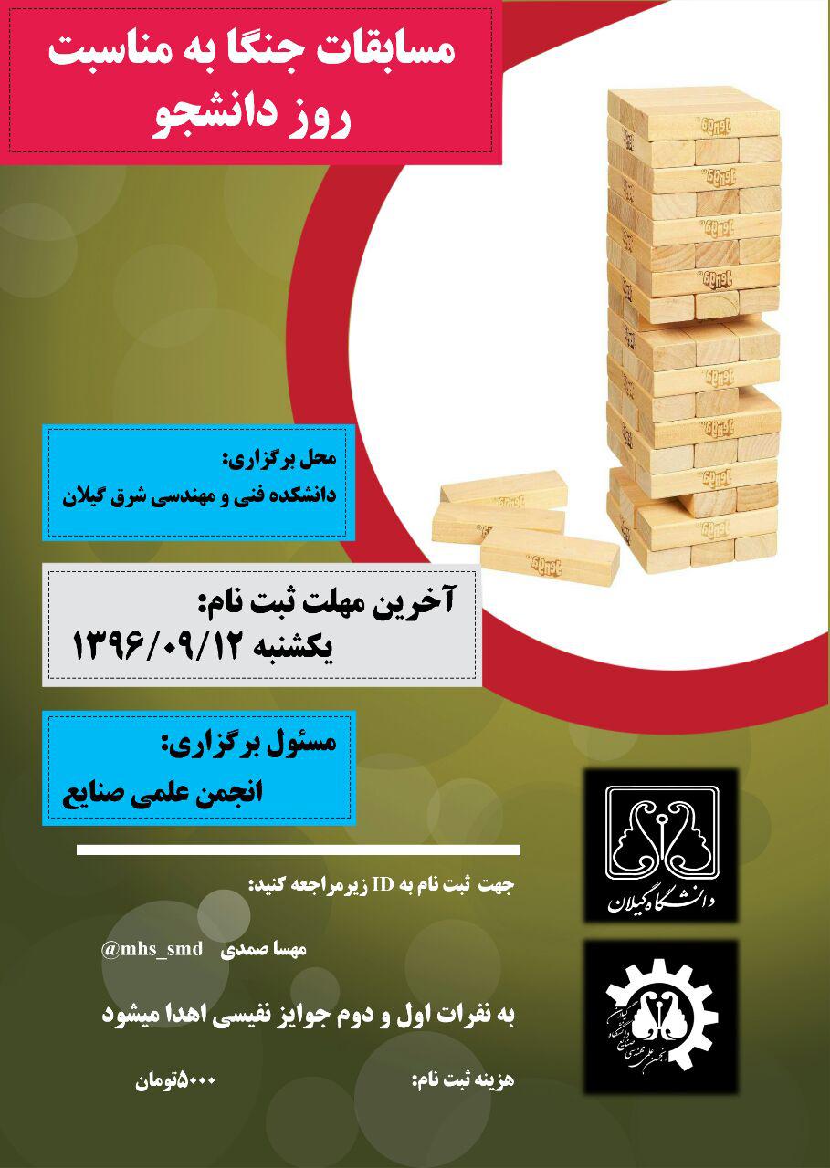 به همت تشکل های دانشجویی فعال در دانشکده فنی شرق گیلان به مناسبت گرامی داشت روز دانشجو، مراسمی با حضور پرشور دانشجویان آذر ماه 96 در این دانشکده برگزار شد. ـ مسابقات بازی های رایانه ای توسط انجمن های علمی عمران و کامپیوتر -مسابقه جِنگا توسط انجمن علمی صنایع - مسابقه دارت توسط بسیج دانشجویی - مسابقه پانتومیم توسط کانون شعر و ادب - محفل شعر خوانی و موسیقی با مشارکت کانون شعر و ادب و کانون موسیقی شرق - جلسه تقدیر و اهدا جوایز با حضور مسئولین دانشکده