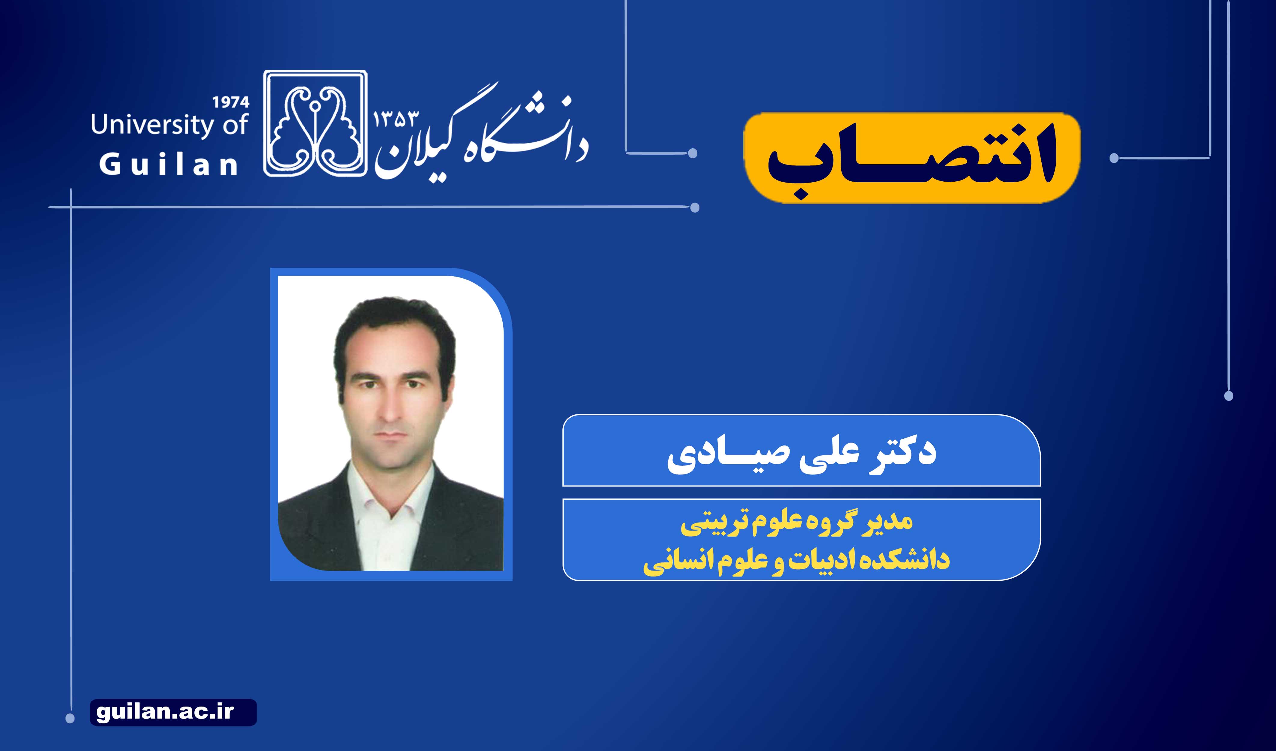 بنا به پیشنهاد رئیس دانشکده ادبیات و علوم‌انسانی و طی حکمی از سوی سرپرست دانشگاه گیلان، دکتر علی صیادی به مدت دو سال به سمت مدیر گروه علوم تربیتی منصوب شد.